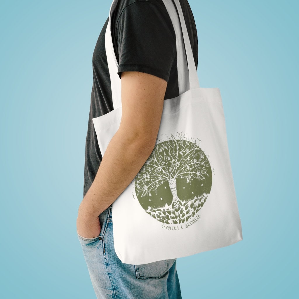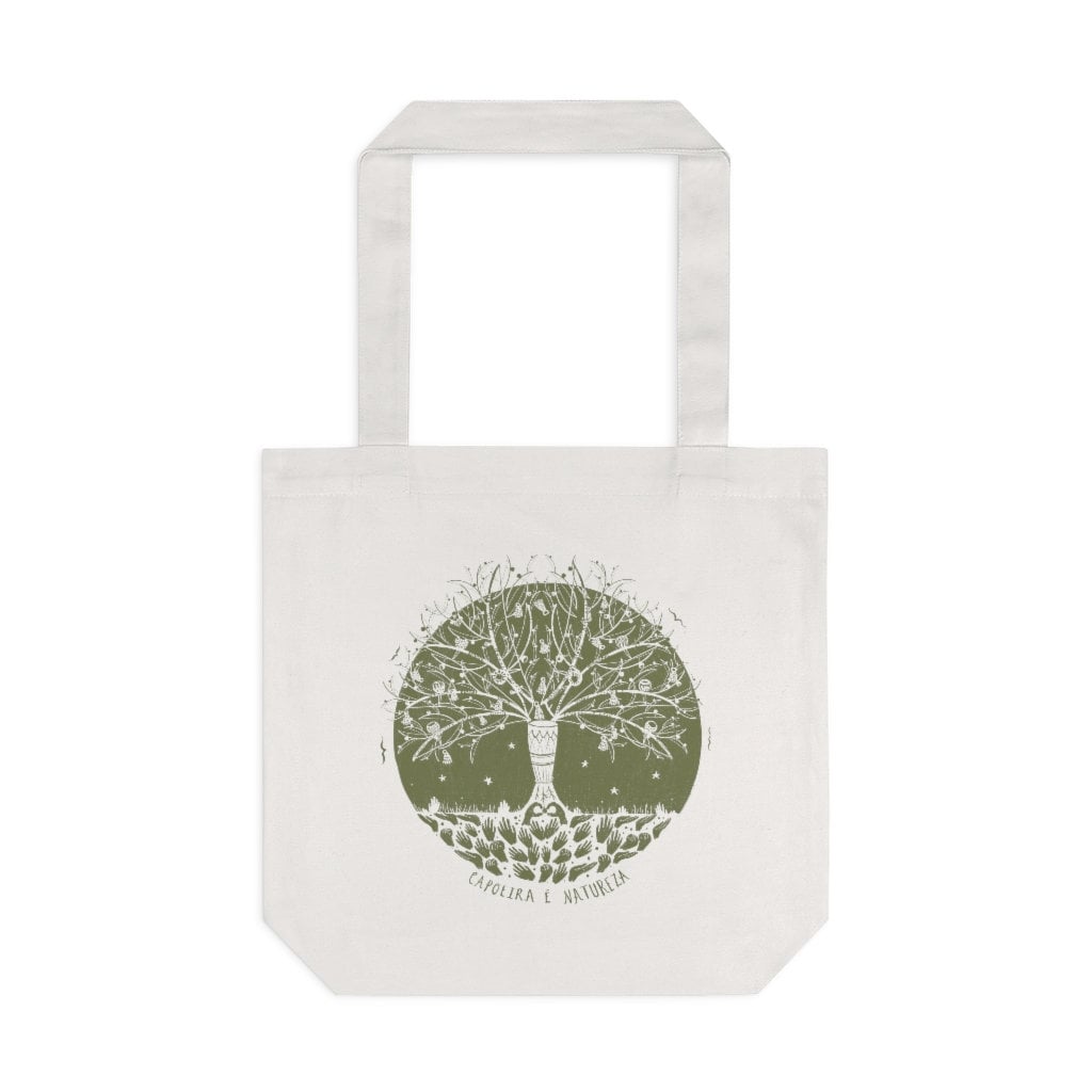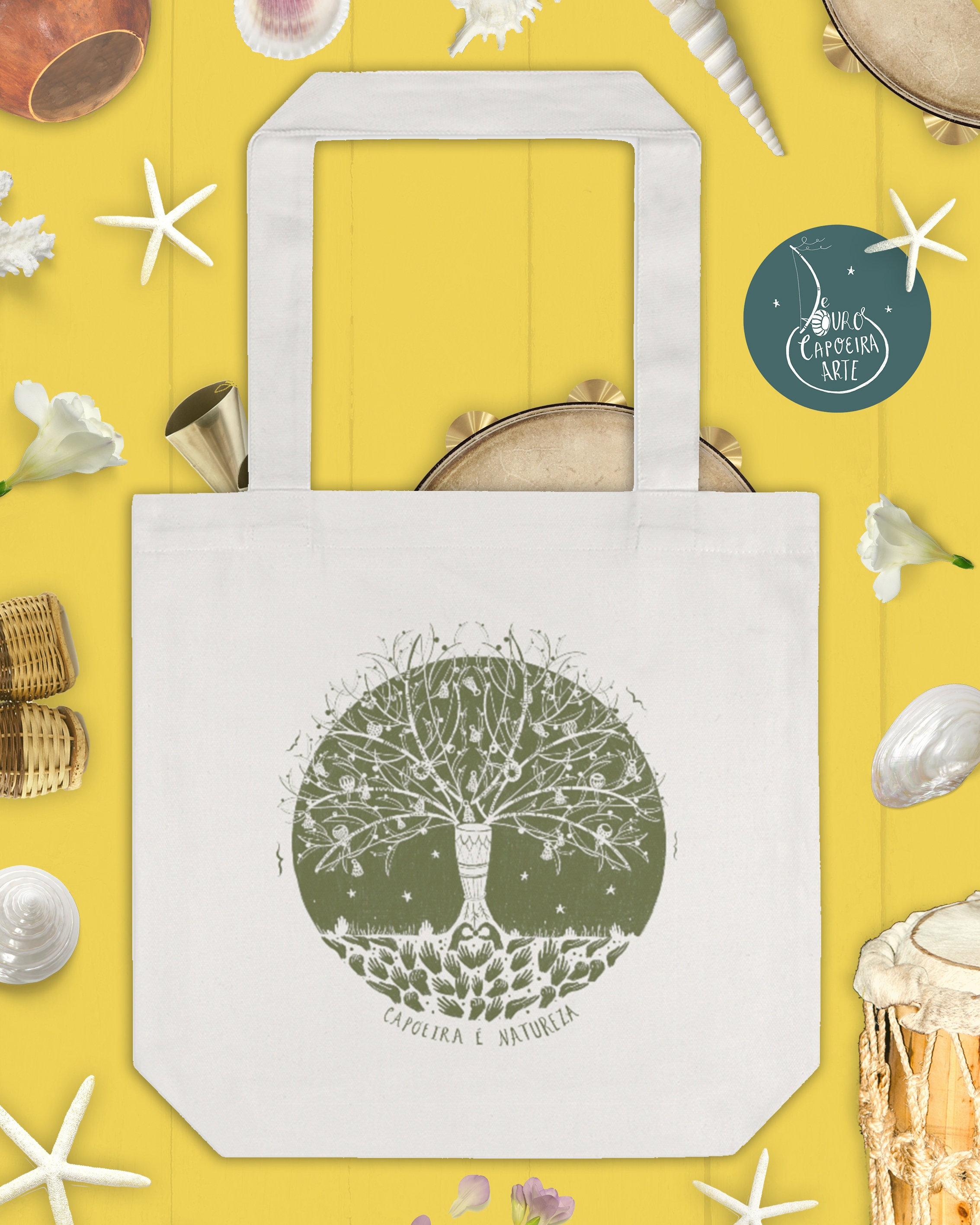 Tote bag featuring the 'Capoeira é Natureza' design, paying homage to the Afro-Brazilian roots of Capoeira.