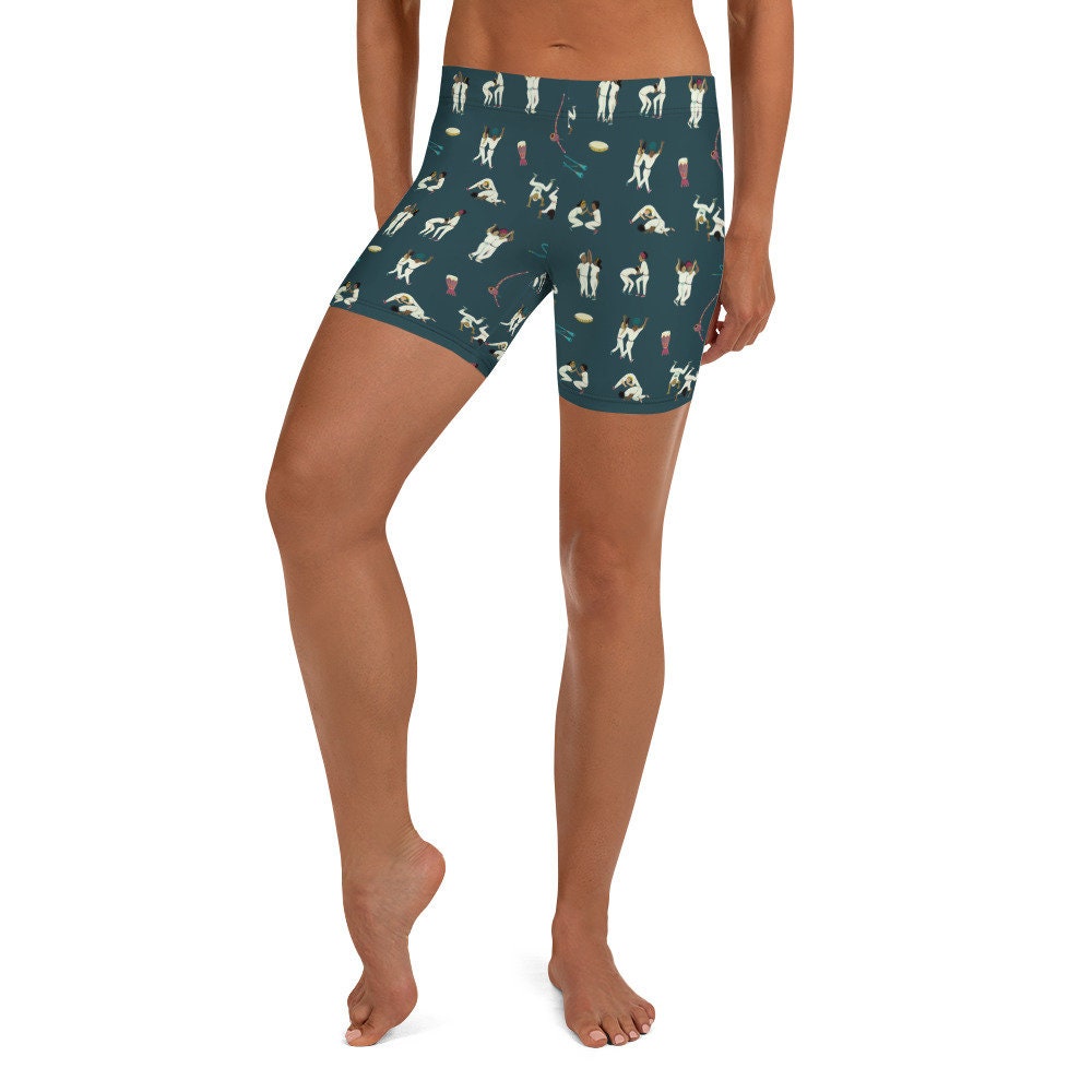 Great quality yoga style shorts featuring the chamadas pattern. Perfect for training at the beach or park in summer.