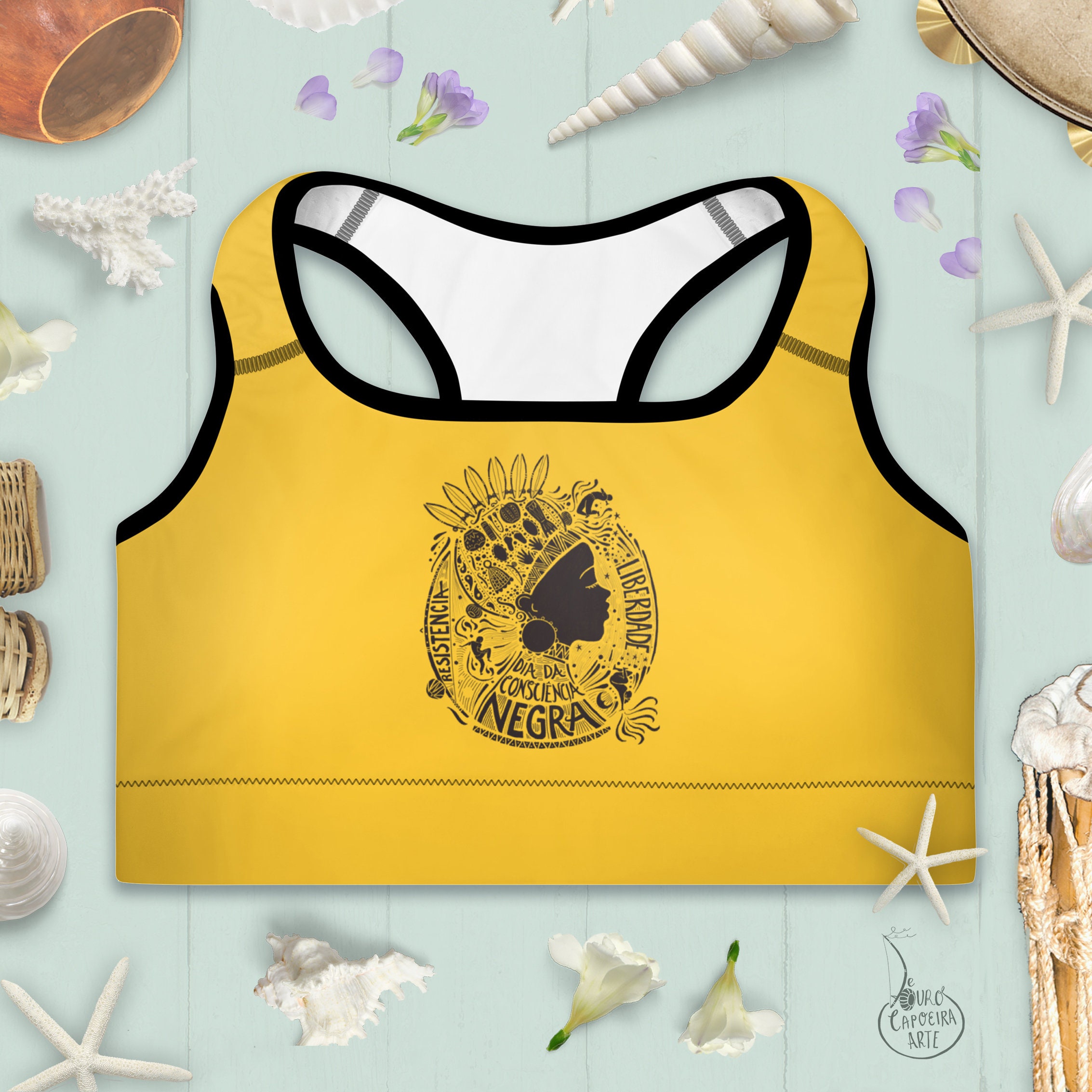 A unique Capoeira Sport Bra featuring the 'Día da Consciência Negra' design. This offers the perfect support for your Capoeira training.
